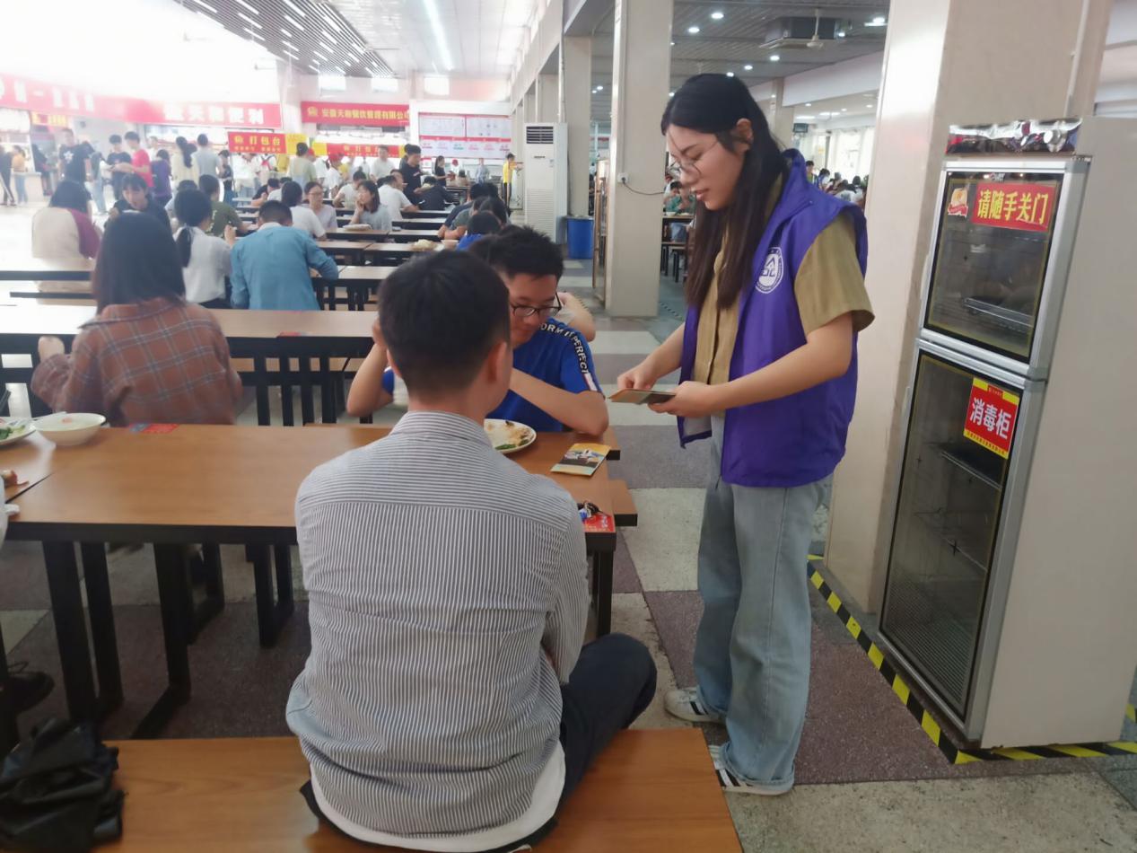 志愿者们在二、三、五食堂和鸠江天桥等人流密集点向过往学生发放防治结核病的科普手册,认真介绍结核病的相关知识和防治方法。