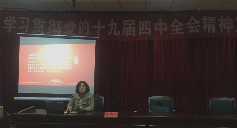 彭鸿雁围绕为什么党的十九届四中全会要以国家制度和国家治理体系建设为主题、并集中全党智慧深入研究这个问题,深入阐释了党的十九届四中全会的重大意义,深刻阐述了中国特色社会主义制度和国家治理体系的显著优势,对《决定》提出的总体要求、总体目标和重点任务进行了系统阐述,对全面落实全会提出的目标任务指出了方法路径。