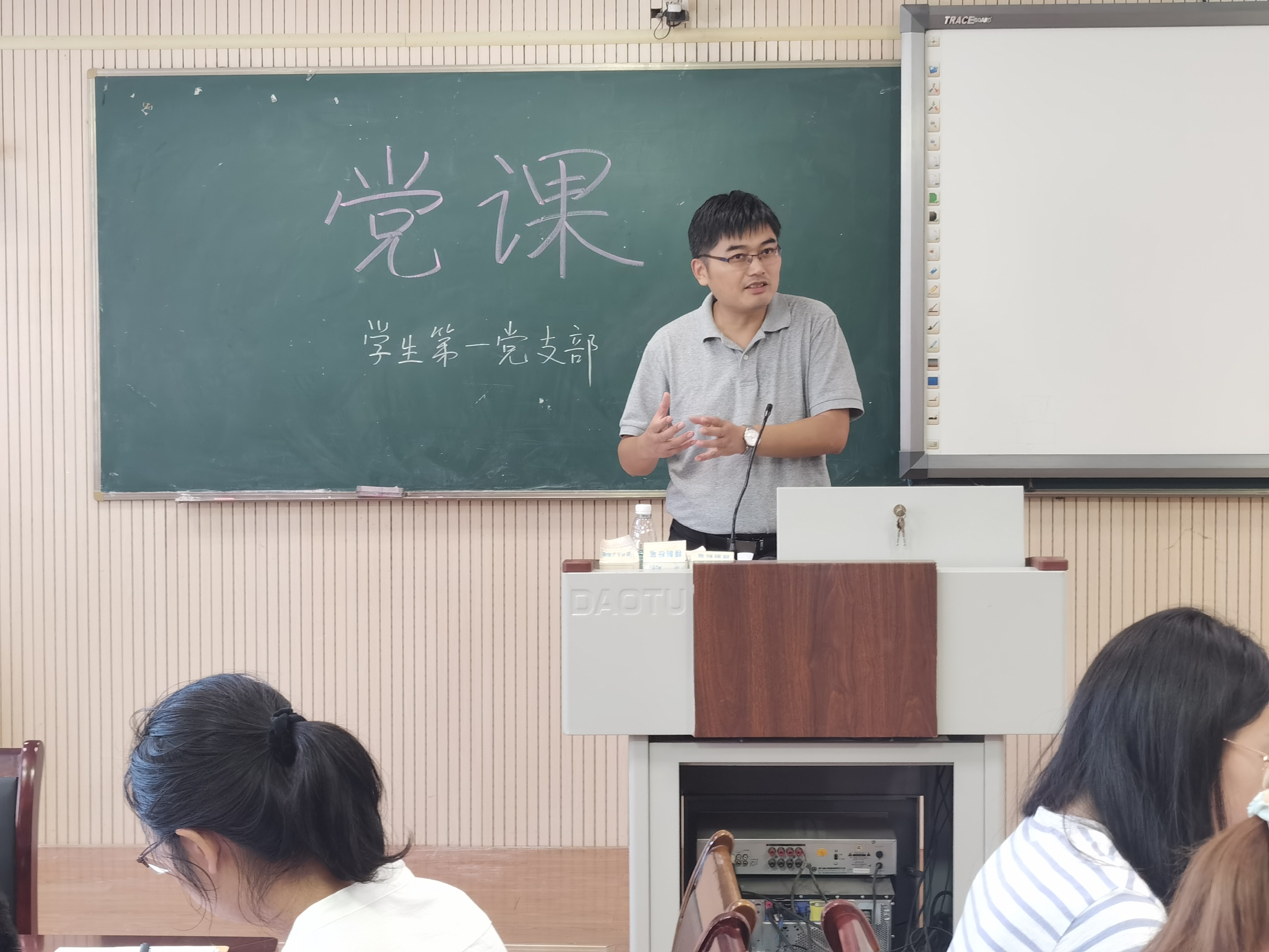 9月17日下午,外国语学院党委书记郑千里为学生第一党支部全体党员讲授习近平总书记“七一”重要讲话精神专题党课。党课由学生第一党支部书记张君主持。