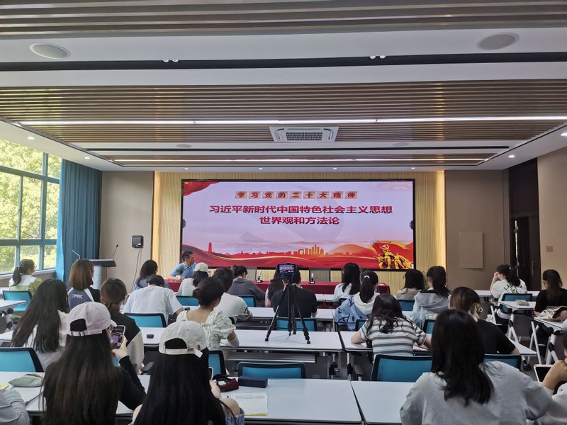 为深入开展学习贯彻习近平新时代中国特色社会主义思想主题教育,推深做实“三全六专”育人实践,激励青年学生学深悟透用活党的创新理论,进一步坚定理想信念、锤炼党性修养,5月19日下午,外国语学院邀请马克思主义学院副院长刘德军在9J209开展“习近平新时代中国特色社会主义思想世界观和方法论”专题讲座。第十三期发展对象和第二十二期入党积极分子全体学员参加此次活动。
