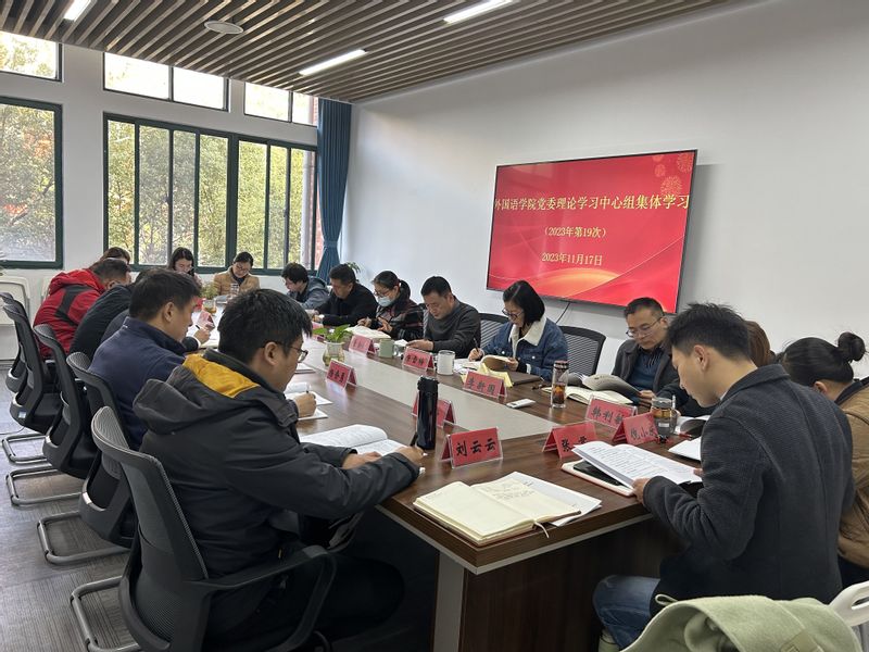 11月17日,外国语学院在9J211会议室召开学院党委理论学习中心组2023年第19次集体学习,校第四列席旁听组成员、机械工程学院党委书记魏长顺,建筑工程学院党委书记李烨到会指导。学院党委理论学习中心组全体成员参加会议。会议由院党委书记董金权主持。