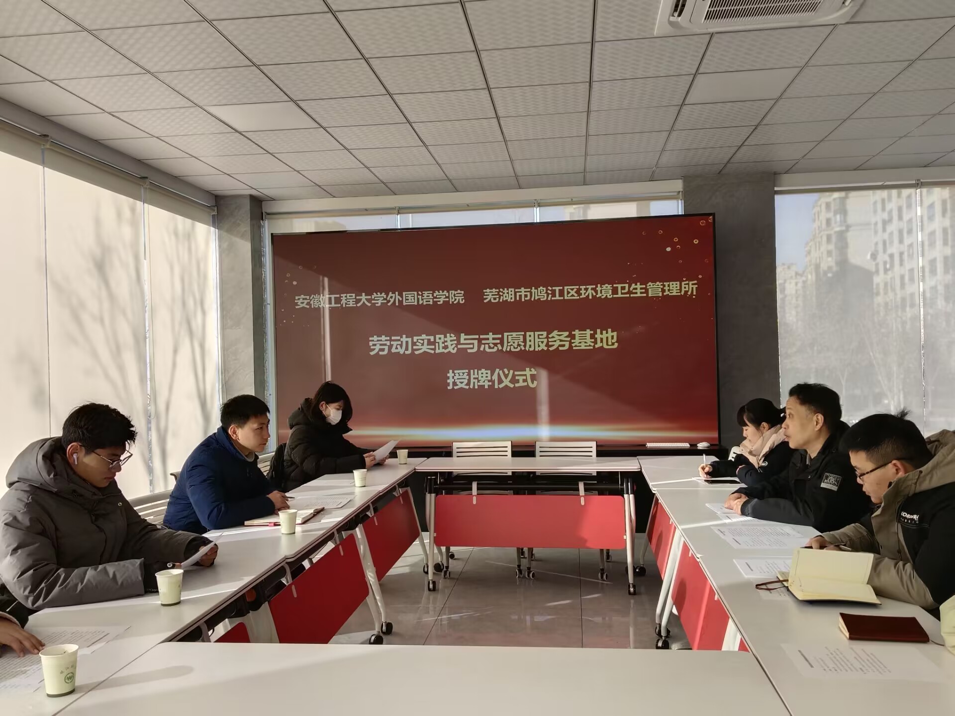 为贯彻落实学校三全六专”实践育人要求,进一步推深做实学院劳动教育,引导学生“勤起来”,12月22日上午,外国语学院赴鸠江区环境卫生管理所开展劳动实践与志愿服务实践基地授牌仪式。鸠江区环卫所副书记、副所长徐兵,鸠江区环卫所综管办主任娄欣,外国语学院团委负责人张君以及“紫阳花”关爱户外劳动者志愿服务团队部分成员参加了本次活动。