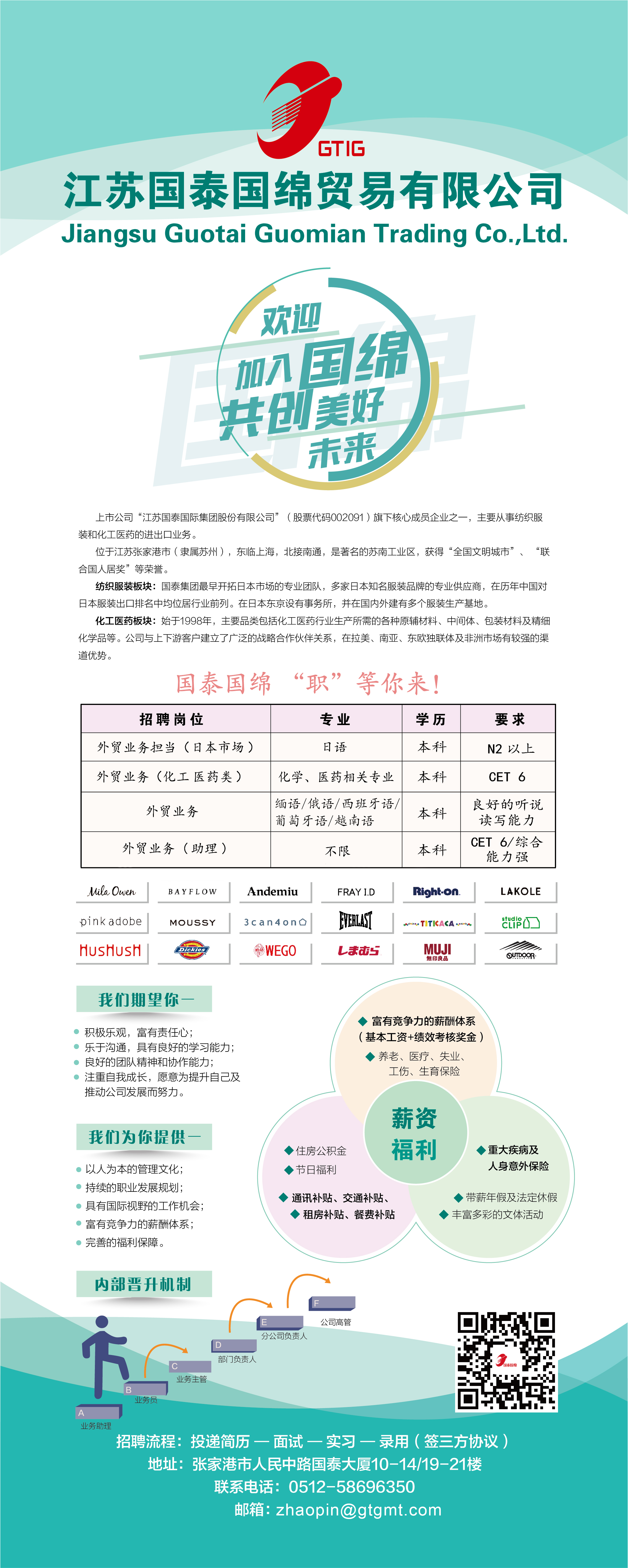 江苏国泰国绵贸易有限公司招聘简章