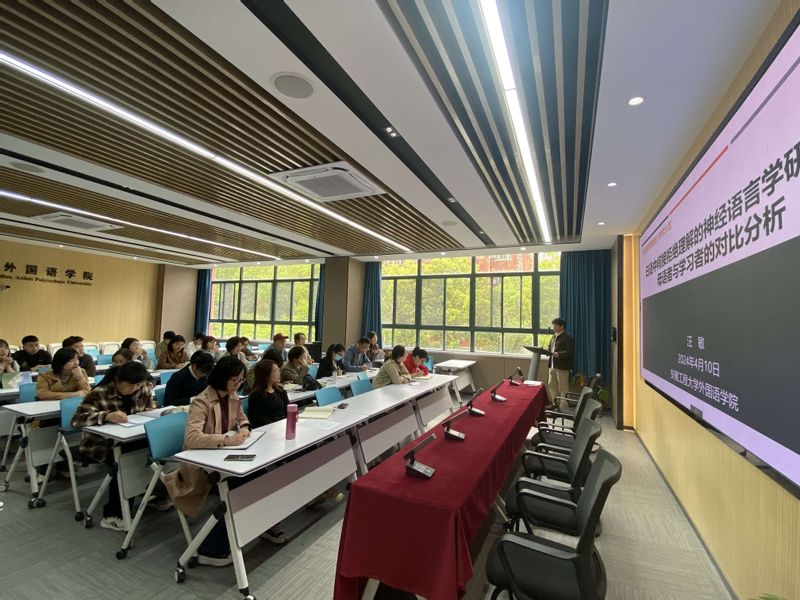 4月10日下午,外国语学院首场“博士沙龙”学术交流活动在9教209开展,活动邀请学院神经语言学团队汪敏博士作学术报告,学院副院长韩利敏、神经语言学团队师生及其他团队教师参加了此次沙龙活动,活动由学院主持工作副院长兼团队负责人唐雪梅主持。