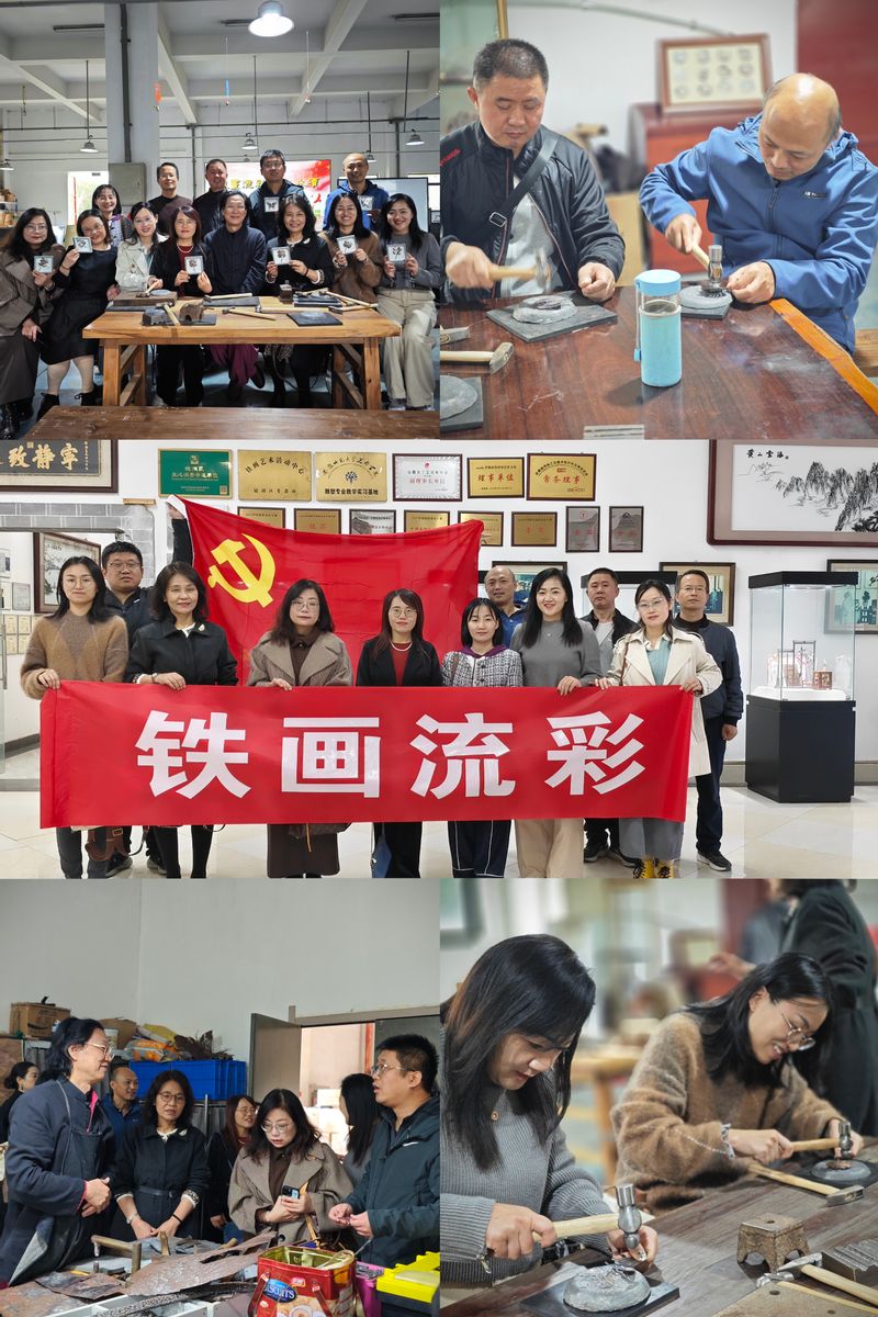 为深入弘扬中华优秀传统文化,传承芜湖铁画锻制技艺非遗瑰宝,11月10日下午,外国语学院英语系教师党支部联合电气工程学院电工电子教工党支部开展“铁画流彩”主题党日活动,旨在通过亲身体验和学习,加深党员们对中华优秀传统文化的理解与热爱。外国语学院副院长韩利敏、两个支部书记及党员们一起参加了本次活动。