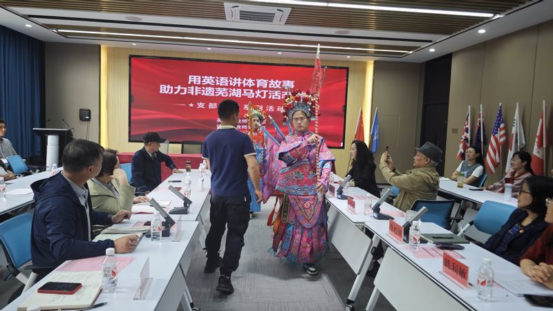 外国语学院和体育学院党政负责人出席活动。活动还特别邀请了芜湖市党史和地方志研究室文史专家金卫东、芜湖印记文化传媒有限公司总经理赵燕,以及芜湖马灯市级非遗传承人谷锡阳、谷定辉、谷玉东,共同为非遗文化的国际传承与传播出谋划策。英语系教师党支部和体育系教师党支部全体党员教师参与了此次活动,活动由英语系教师党支部书记苏涛主持。
