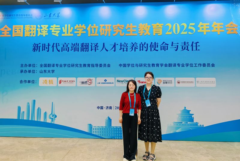 5月18日,全国翻译专业学位研究生教育2025年年会在山东济南盛大召开。本次年会以“新时代高端翻译人才培养的使命与责任”为主题,吸引了来自全国翻译专业学位研究生教育指导委员会委员、全国开设翻译专业的院校代表及行业专家等600余人齐聚一堂,共同探讨新时代高端翻译人才培养的新路径与新使命。外国语学院副院长韩利敏,英语系副主任杨晓丽参加此次盛会。