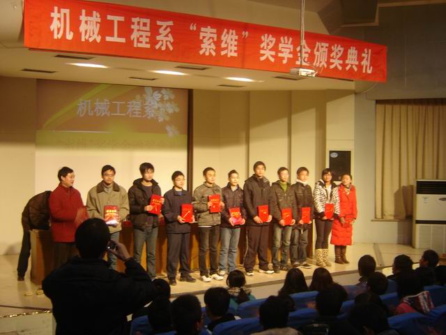“索维”奖学金的设立不仅深化了我校“三做”育人理念,推进学风建设,更是对同学们一种鞭策和鼓励,使同学们有了明确的奋斗目标,积极的向自己的理想奋进!(机械工程系)