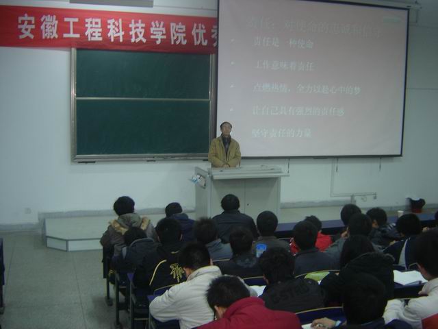 首先,王处长强调了责任对于成就毋庸置疑的重要性。他指出:责任是一种胜于能力的使命,只有把握细节、尽职尽责,养成负责任的习惯才能充分释放人生的潜能,铸就人生成就的基石。其次,王处长从四川汶川地震灾害中的责任与态度出发,阐明责任对于民族发展的重要性。继而,王处长又结合自己的亲身经历,对日本国民在日常生活中所表现出来的认真、严谨、敬业、规范态度抒发了深深的感慨与敬佩,希望我们择其善者而从之。最后,王处长真挚地对我系全体党校学员在责任内涵与形式方面提出了几点建议和希望。