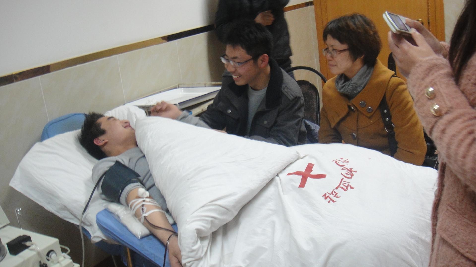 义无反顾,捐献血小板和常规血。2012年3月24日晚上6:45,在池州市人民路中心血站的血液机采室,管理工程学院物流101班的同学王雷,从容地躺在采血机旁边的小床上,微笑并注视着自己的血液缓缓地输送到血液分离机上。时钟一分一秒地过去,年轻的血液在静静地流淌着。这个过程中,每17分钟左右完成300毫升一个循环,而这样的循环一共要6次,每一次回血都是透心的疼痛,可是我们的学生却面带微笑地对老师说“辅导员,我行的,我可以的”。110分钟后,输出血量1800毫升,一个治疗量200毫升的血小板才采集完成。此时王雷已是饥肠辘辘,身体发凉,但他依然笑着打趣到“这么快就好了啊?”次日上午9:30,同行的孙岩正雄、段丹、张黎三个同学给患者定向互助献出常规血700毫升。而不足20岁的王雷和他的同学们却说,救死扶伤嘛,献血小板和献血是应该做的。一直陪着他们的辅导员虽很心疼,却也为他们的行为感到骄傲。