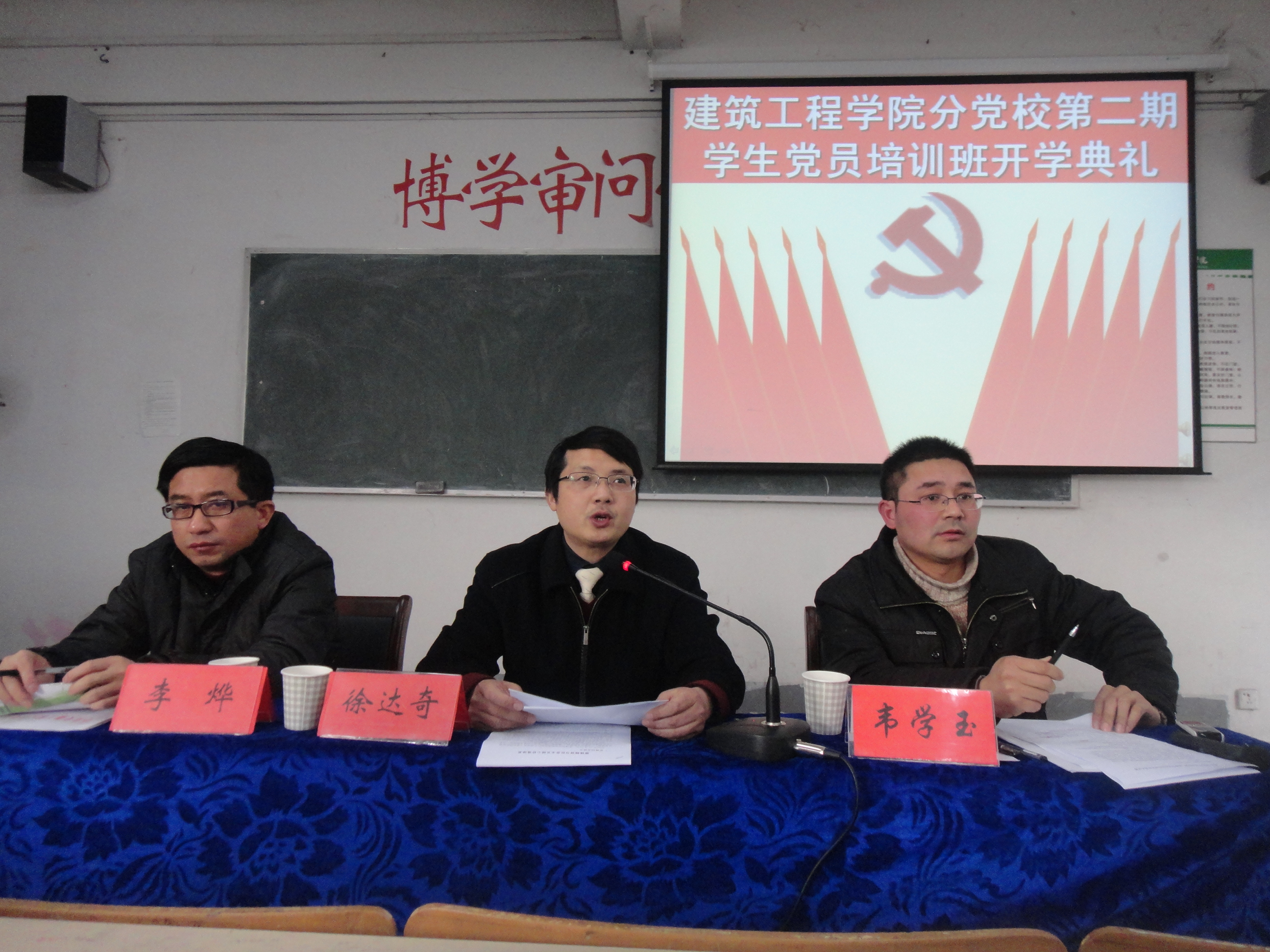 为加强学生党员党性锻炼,进一步促进学习型党组织建设,提高学生党员的思想政治素质, 建筑工程学院分党校第二期学生党员培训班开学典礼于3月21日下午在2J202顺利举行。出席本次开学典礼的有建筑工程学院党总支书记徐达奇、副书记李烨以及各年级辅导员。典礼由本期培训班班主任韦学玉老师主持。