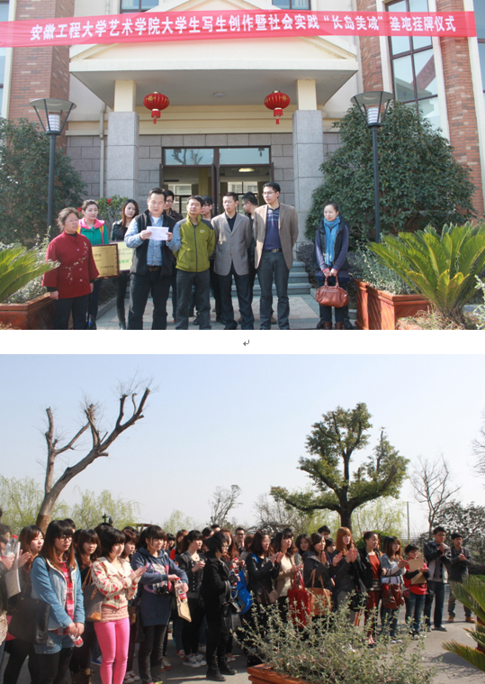 331上午,艺术学院“长岛美域”大学生写生创作暨社会实践基地挂牌仪式在芜湖县湾镇举行。学院党委副书记孟向红、副院长承杰和80余名师生参加仪式。