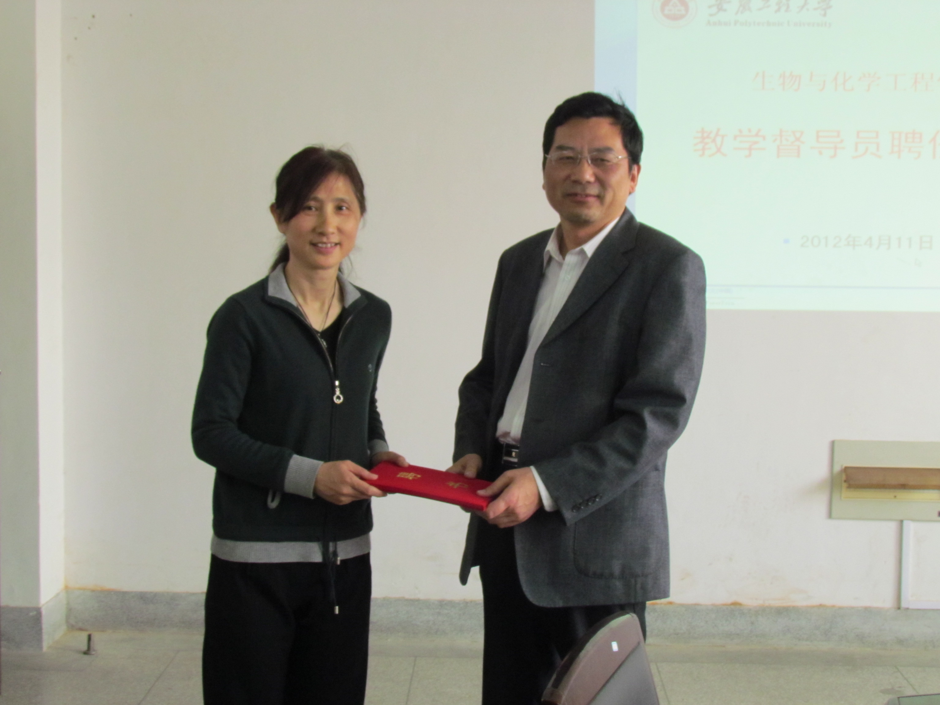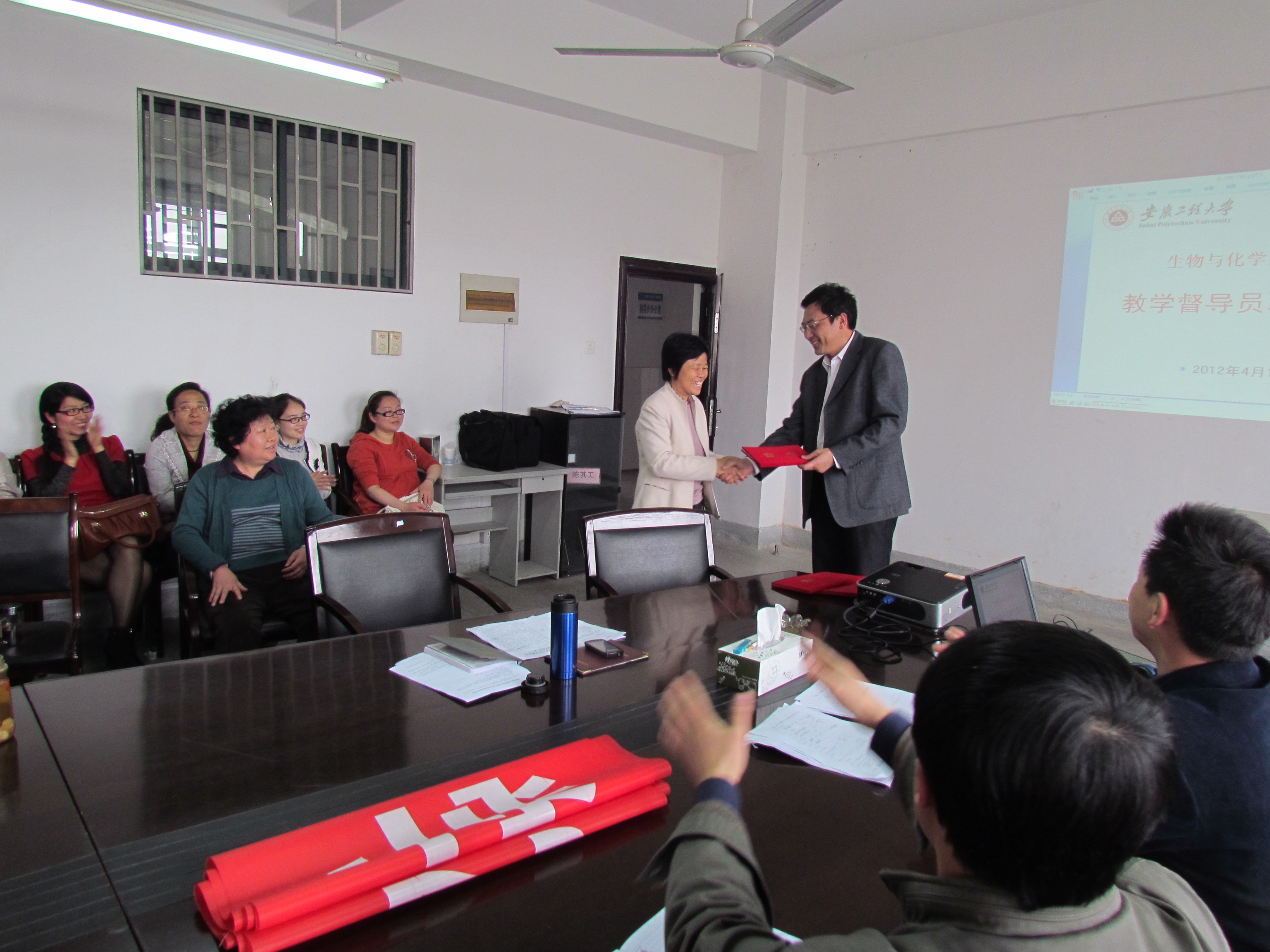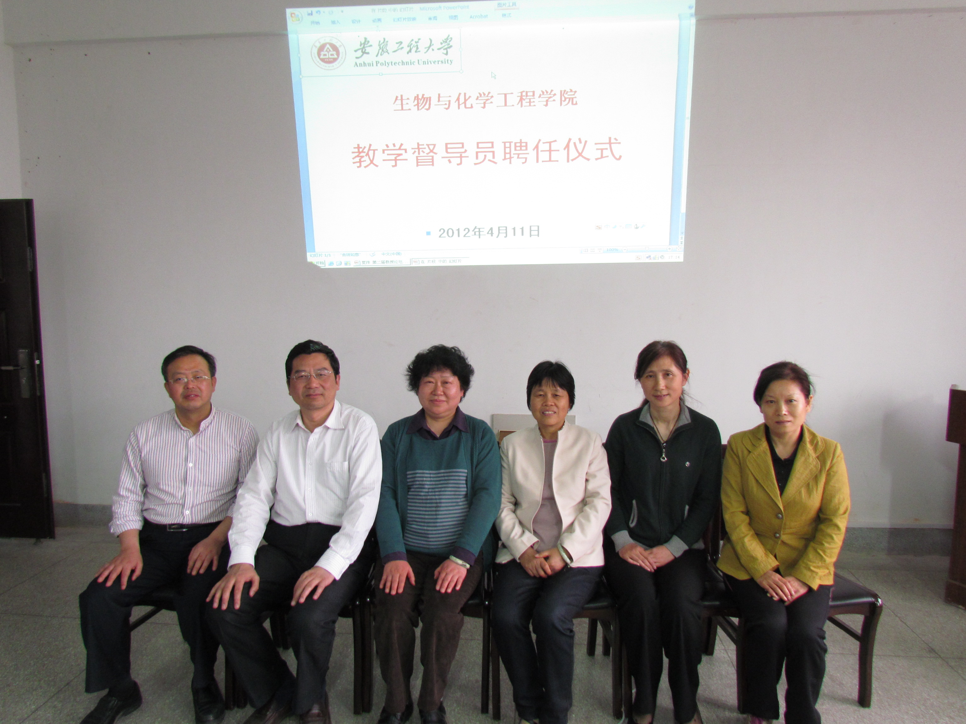 生化学院于2012411日下午,在学院会议室举行了首届教学督导员聘任仪式,仪式由学院副院长陶玉贵教授主持,并宣读了 《关于聘请丁纯梅等3位教授为我院首届教学督导员的决定》,全体教职工参加了聘任仪式。