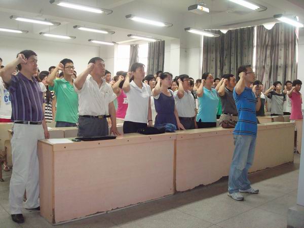 电气工程093班王晓晴同学代表全体预备党员表示将在今后的学习、工作以及生活中以实际行动履行自己的誓言,严格按党员标准要求自己,充分发挥党员先锋模范作用,刻苦努力,创先争优,争取按期转为中共正式党员,全心全意为人民服务,以实际行动和优异成绩迎接党的十八大。
