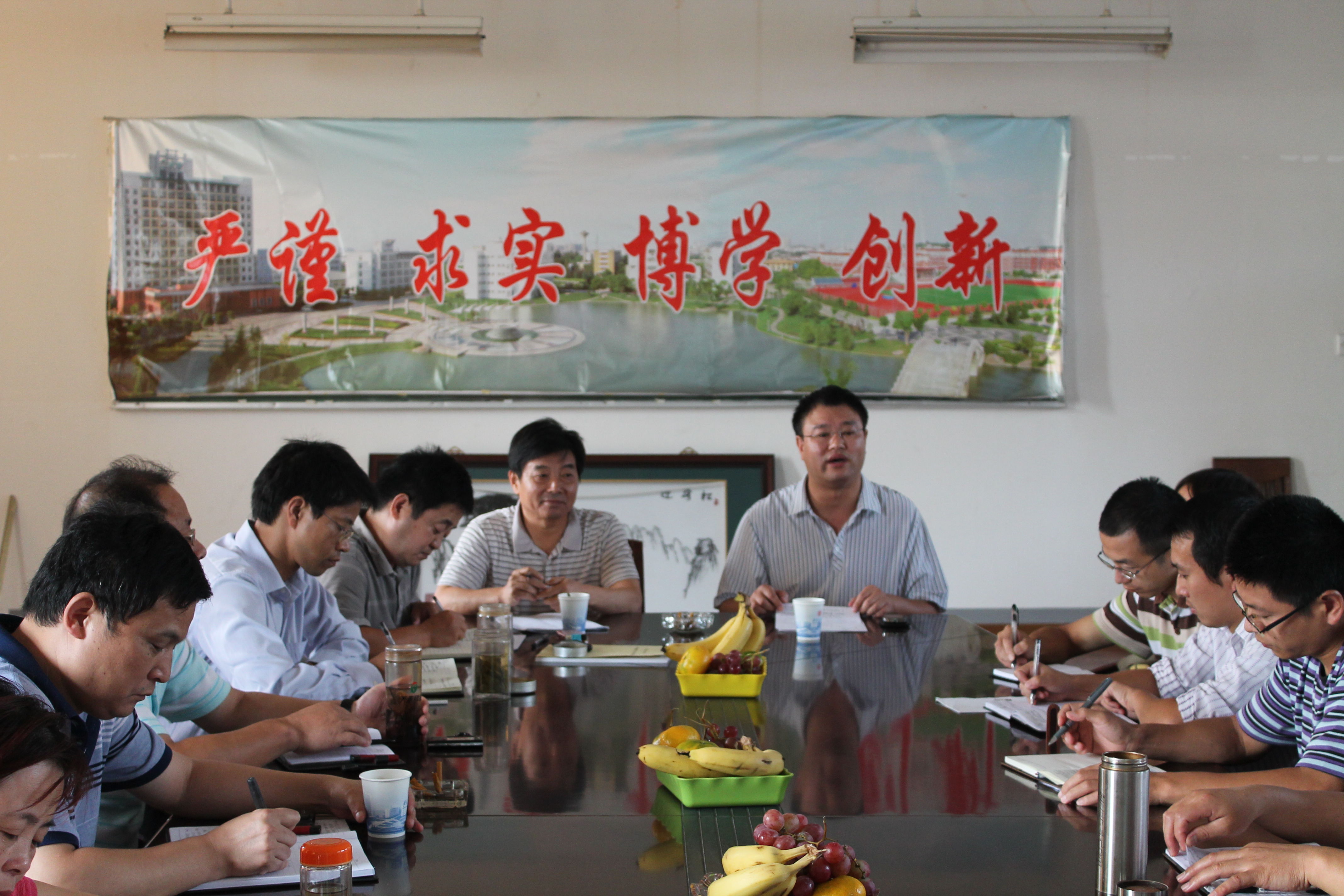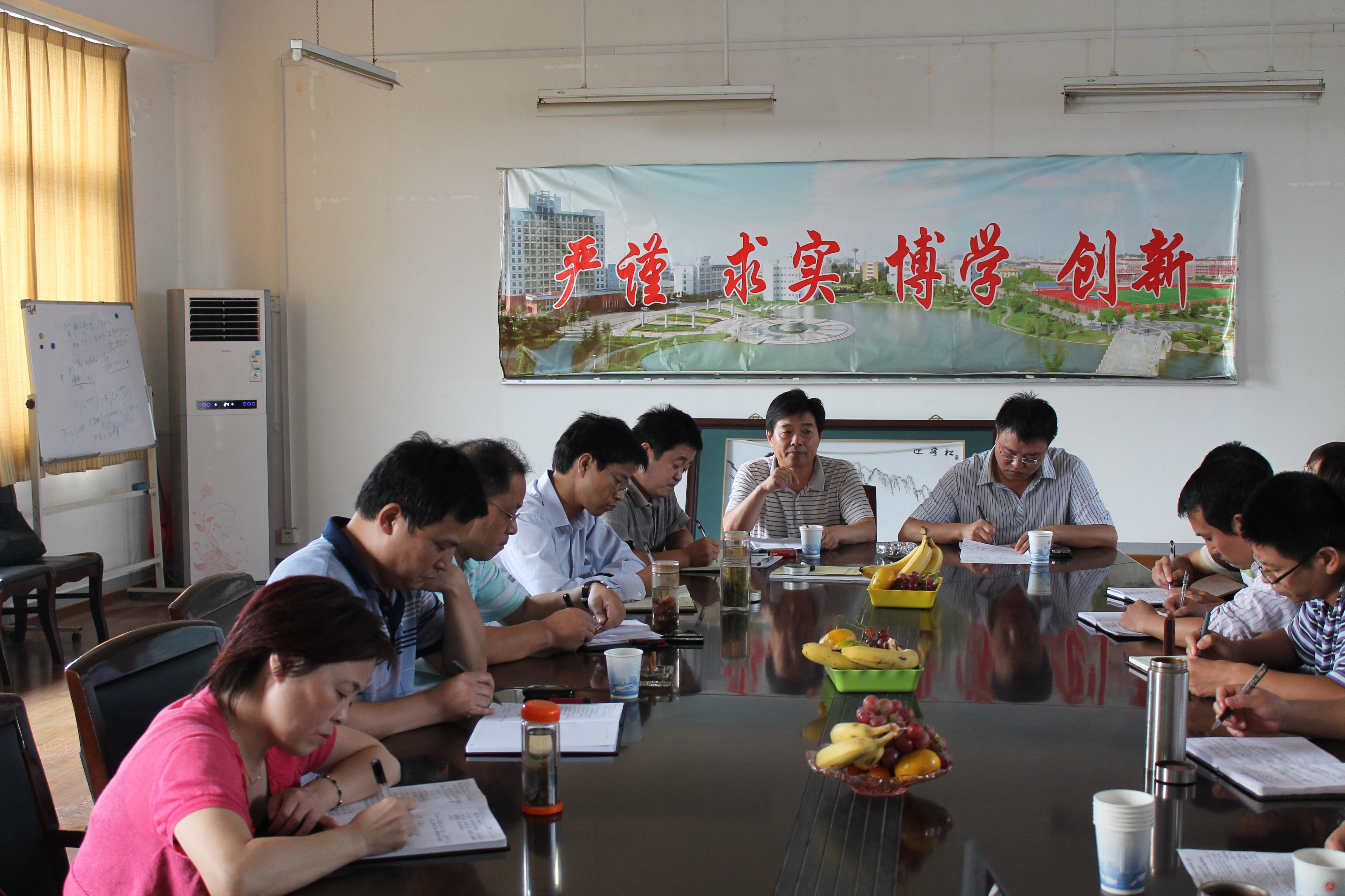 为贯彻落实2012年安徽省高校教学工作会议和学校2012年暑期教学工作会议精神,数理学院于831910组织全院教职员工学习省及学校教学工作会议精神,并于911,组织召开2012年学院教学工作交流汇报会。会议主题是:提高育人质量,服务学校发展。副校长叶常林、校纪委书记汪奇燕、教务处处长陶庭先、副处长吴正霞应邀出席,院长费为银、院党委书记张开炳、副院长王传玉、院党委副书记水心宝、各系部中心主任、教学科研秘书、金融工程研究所所长及部分教师代表参加会议,会议由费为银主持。