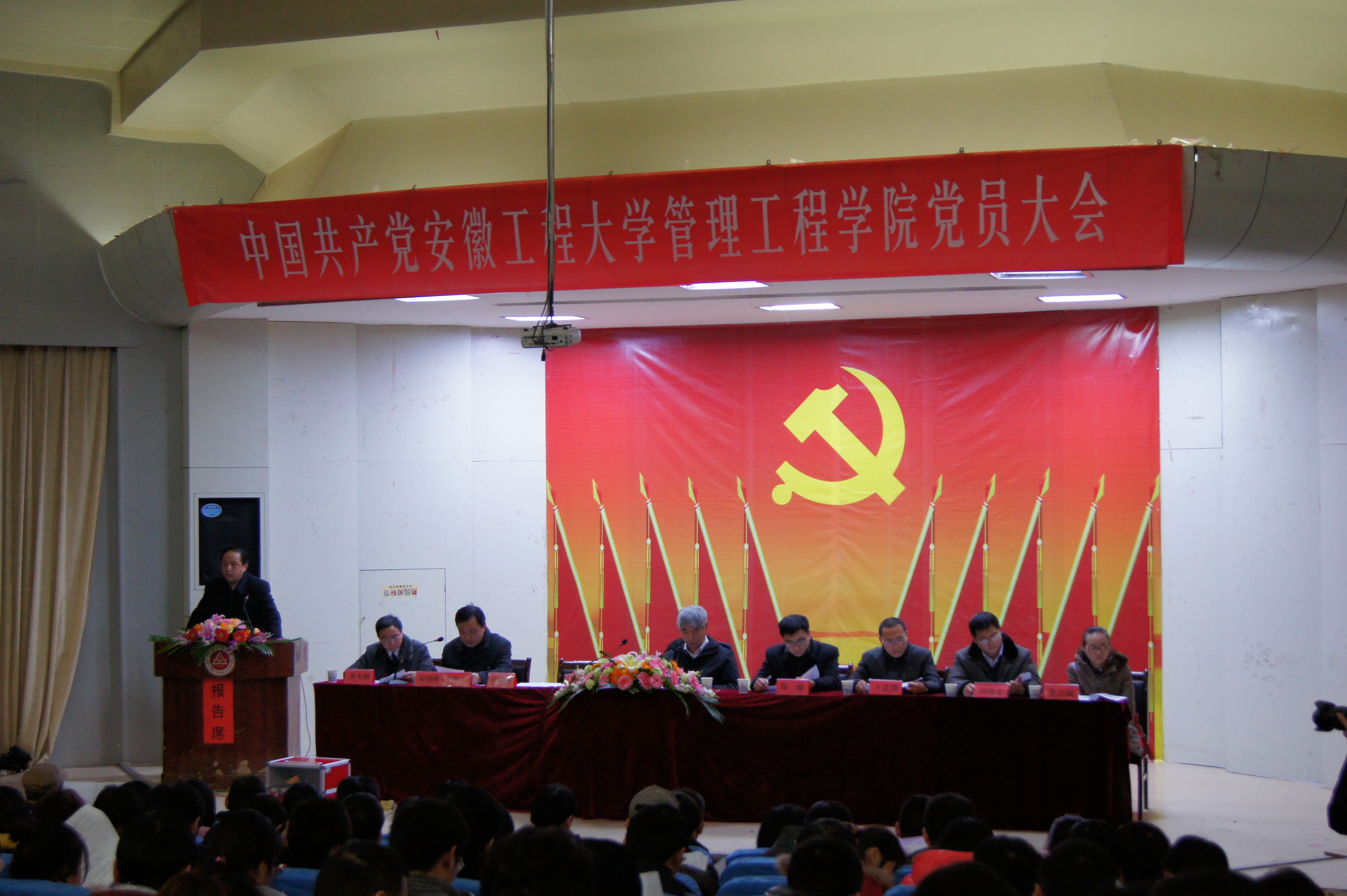 2012122 6日下午,管理工程学院党委换届改选大会在庄严的国歌声中隆重召开。校党委书记陈其工书记出席会议并做了重要讲话。学院全体教工党员和学生党员参加了本次大会。校组织部部长郑健同志出席了大会。大会由管理工程学院党委副书记何朝林同志主持。