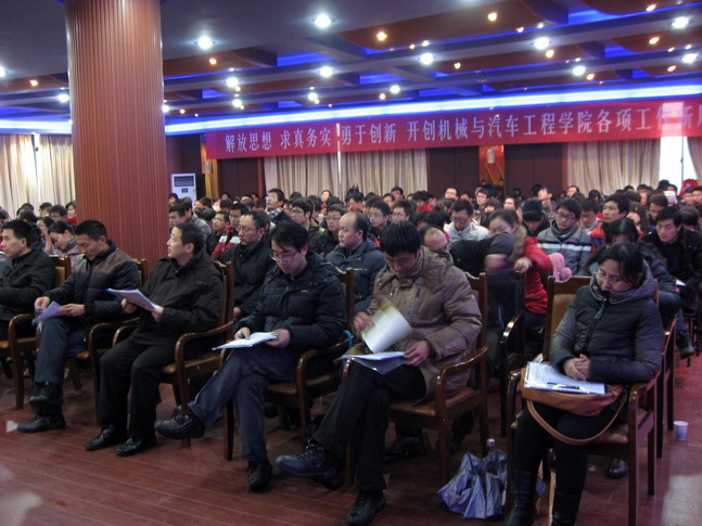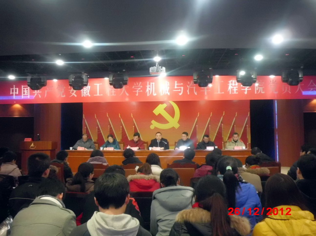 大会在激扬的国歌声中拉开序幕。首先邓英扣代表上一届党委作了题为《解放思想,求真务实,勇于创新,开创机械与汽车工程学院各项工作新局面》的工作报告。报告第一部分从坚持教学工作的中心地位,促进教学质量不断提高;锐意进取,学科建设和科研工作成效显;贯彻“三做”育人理念,培养高素质应用型人才;加强党建与精神文明建设,发挥党组织的战斗堡垒作用等四个方面我院近四年来取得的喜人成果进行了总结和回顾。在充分肯定成绩的同时,他还指出了我院在思想观念和创新意识等方面的不足。报告第二部分明确了今后四年工作的理念:在学校总体办学思路指引下,学院坚持以教学工作为中心,以人才培养为根本,以学科建设为龙头,以队伍建设为基础,深度融合地方经济,立足工程应用,培养和造就诚信实干、具有创新精神和较强工程实践能力的高素质应用型人才。从加强队伍建设,造就高水平师资队伍;以教学工作为中心,进一步提高教育教学质量;发挥学科建设的龙头作用,通过学科建设带动科研、促进教学;积极推进卓越工程师计划和专业综合改革,培养高素质应用型人才;加强科研工作,提高科研水平,加强产学研合作力度;扎实推进学风建设,促进毕业生质量提高;加强党的建设,发挥党组织的政治核心和监督保证作用等方面提出了具体措施和发展目标。报告最后号召广大党员和师生,高举中国特色社会主义伟大旗帜,以邓小平理论、“三个代表”重要思想、科学发展观为指导,在校党委的坚强领导下,解放思想、实事求是、与时俱进、求真务实,为开创机械与汽车工程学院各项工作新局面而努力奋斗!