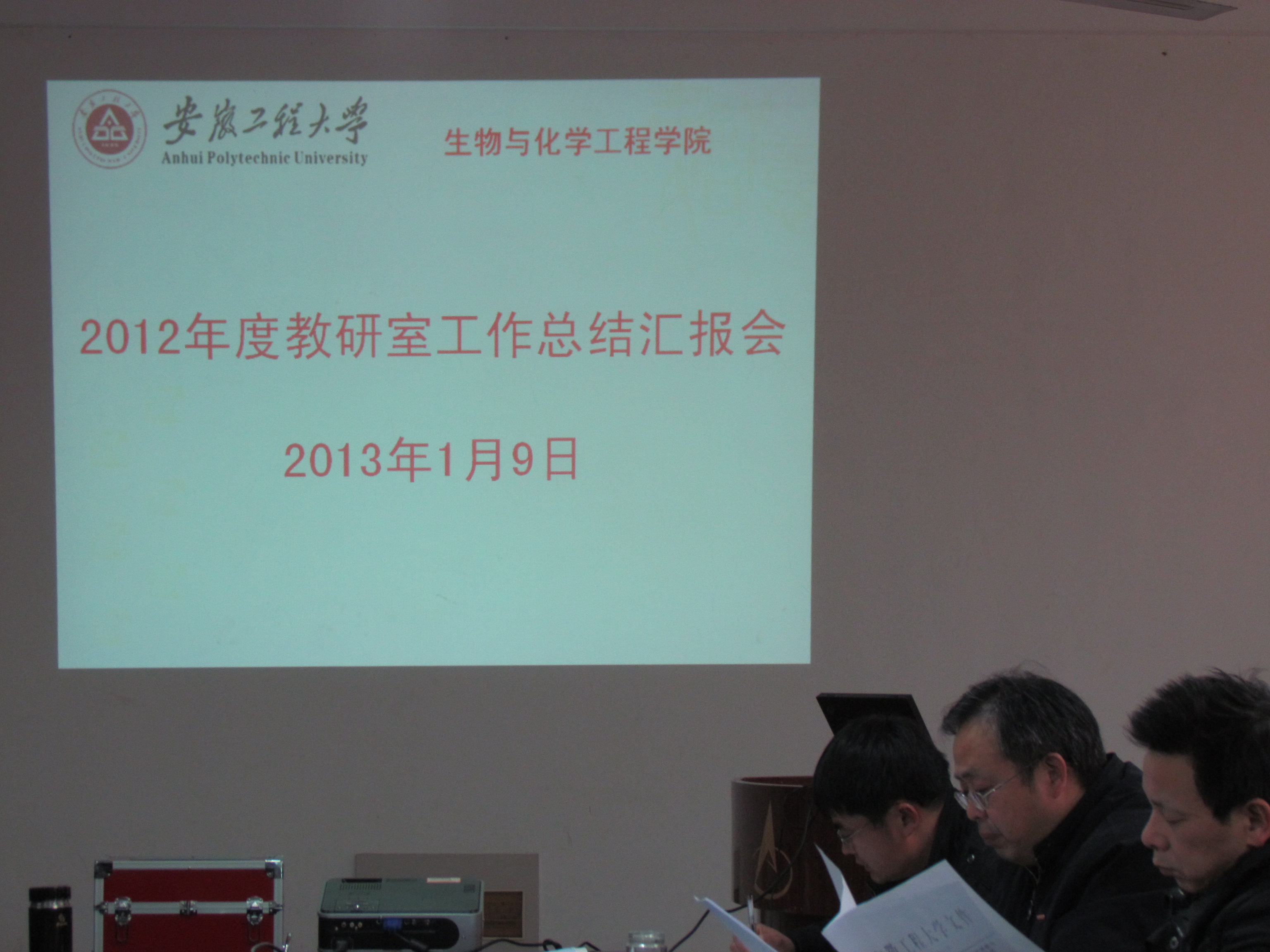 为了更好的总结经验,交流体会,找出差距。1月9日下午,生化学院在学院会议室举办了2012年度教研室工作总结汇报会,学院全体教师参加了汇报会,会议由学院院长徐建平主持。