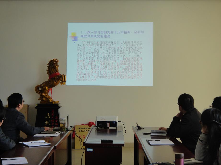 会上,徐达奇带领全体成员学习了教育部2013年工作要点,并通过ppt的方式学习了袁贵仁部长在2013年全国教育工作会议上的讲话要点。
