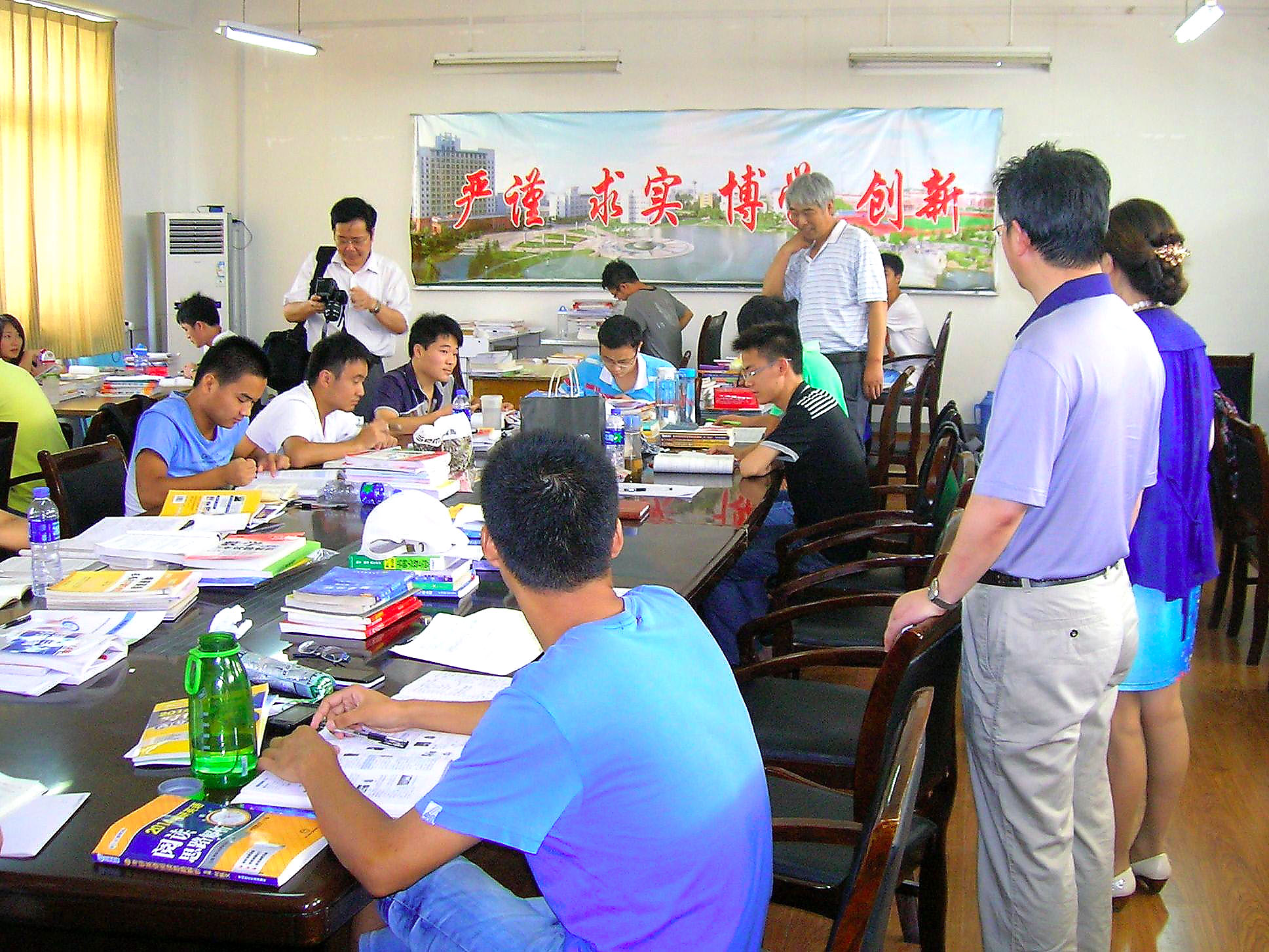 7月31日上午,校党委书记陈其工、副校长李震、党委副书记苏国红、副校长郭兴众在校群众路线教育实践活动办公室主任、组织部长郑健等相关部门领导的陪同下,冒着酷暑高温来到数理学院,亲切看望我院暑期留校复习考研的学生。