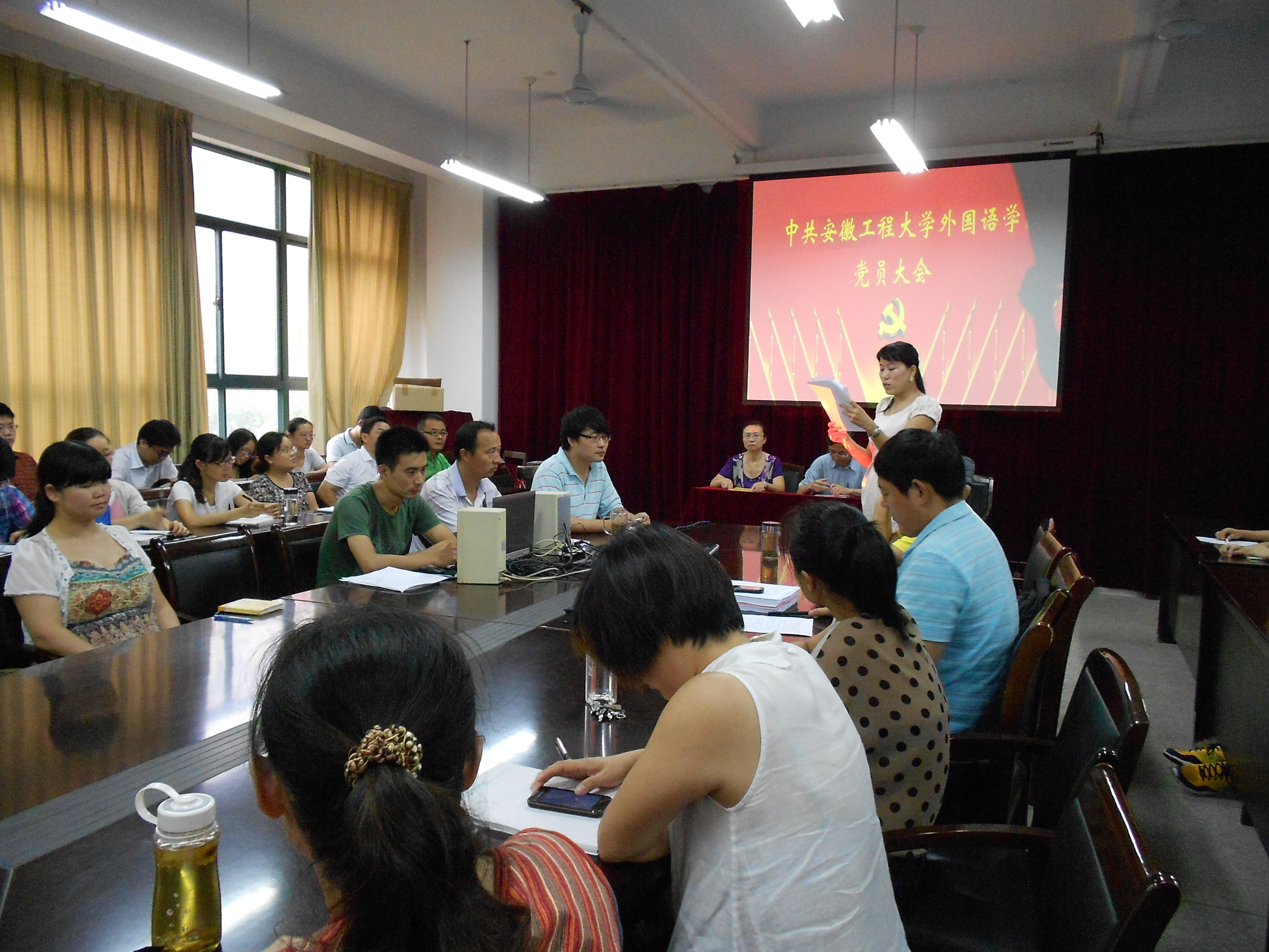 826下午,外国语学院在学院会议室召开党员大会进行学校第一次党代会代表选举暨两委委员候选人推荐工作。会议由学院党总支书记汪玉明主持。