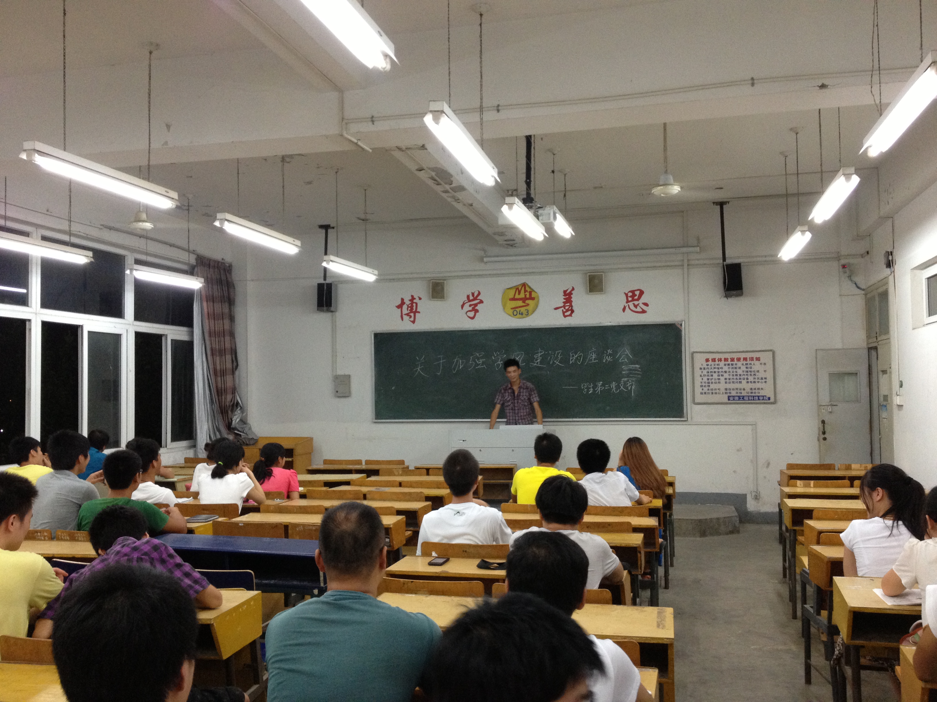 座谈会分三步进行,首先,各支部内部分组讨论;然后,每组由一名代表交流本组的讨论重点;最后,各支部负责人予以总结汇报。学生一支部的讨论重点有:学校角度:优化环境,强化氛围;老师角度,尽其德,尽其职;学生角度,求真务实,励志创新。学生二支部从学风建设管理层面展开讨论:加强课堂管理,保证课堂纪律;加强网络管理,保证学生按时作息;加强寝室管理,营造良好的学习氛围。学生三支部从自身角度予以承若:思想上,树立全心全意为同学服务的宗旨;行动上,理论与实践相结合,争当专业学习的标兵。在各支部负责人汇报之后,党委副书记、副院长何朝林就教育实践活动阐述两点:一是如何落实教育实践活动,发挥学生党员的三大作用,即:引领作用,成为广大学生的标杆;桥梁作用,畅通学生与老师之间的沟通渠道;监督作用,确保各项规章制度落到实处;二是切实有效推进我院学风建设,即,保证自己、帮助他人和结合专业继续深化我院开展的一、二、三课堂联动机制。