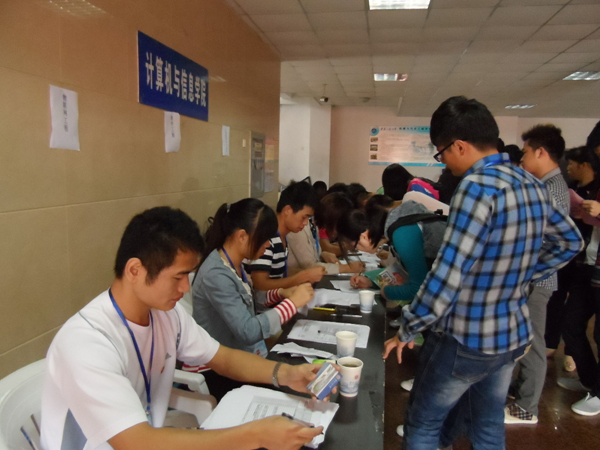 计算机与信息学院十分重视迎新工作,成立了迎新工作组,召开专题会议,精心策划,周密安排,明确要求,落实责任。新生到校前,三个学生党支部组织党员义务劳动,把新生寝室打扫得窗明几净;各支部在志愿报名的基础上推荐8名优秀学生党员担任新生班级的辅导员助理;院团委学生会周密安排准备,专门招募组建了迎新工作志愿者队伍。新生报到当天,所有工作人员都早早来到现场进行准备,教师党员和学生党员胸前还佩戴了党徽;报到现场不仅能看到兢兢业业的老师,看到更多的是笑容满面、尽职尽责的学生志愿者。整个新生接待工作有条不紊,新生入学报到非常顺畅。