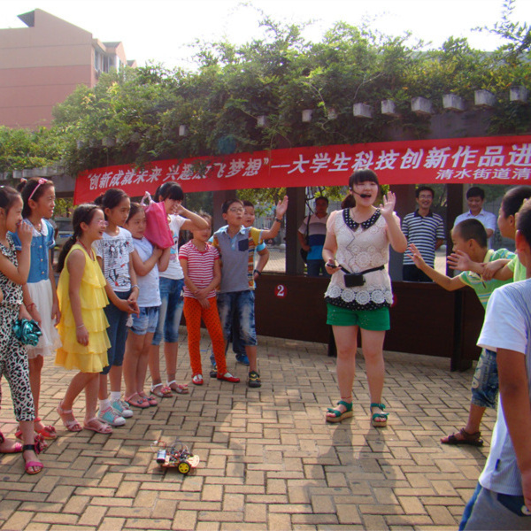 9月14日,电子科技协会的同学们在校团委的组织下,来到芜湖市清苑社区,开展“科技成就未来,兴趣放飞梦想”大学生科技作品进社区活动。在社区广场,50多位小朋友团团围住在场的大学生们,兴高采烈地观看着大学生们带来的科技作品,争先恐后地踊跃参与互动演示。“你们下次什么时间来我们这给我们讲课?”、“下次可不可以教我们制作科技作品?”在活动接近尾声的时候,小朋友们依然紧紧围绕在志愿者的身旁,希望他们能够带上更多更好的科技作品来到社区。