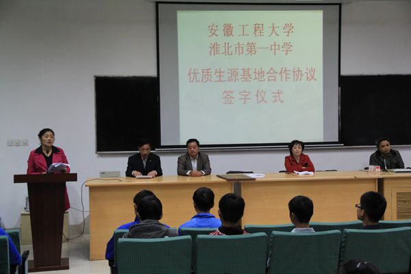 1029111,校招办一行赴宿城一中、宿州二中、濉溪中学、淮北一中等皖北省示范高中进行“优质生源基地”授牌仪式并开展了活动。我校与各中学签订了合作协议,并在同学们的见证下举行授牌仪式。参与此次活动的学校领导对我校的校园环境、办学理念、培养方向、招生就业等方面给予高度评价,纷纷表示一定全力支持我校招生工作,为我校输送更多优秀毕业生,同时希望以此次授牌仪式为契机,进一步加强与我校在招生、科技创新、科普讲座等方面的交流与合作。电气工程学院的王冠凌副教授还在几所中学进行了精彩的“学生创新能力培养”知识讲座,深受学生欢迎。