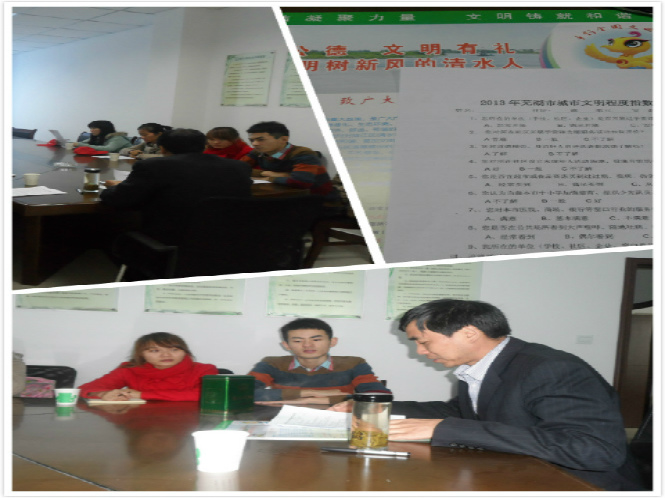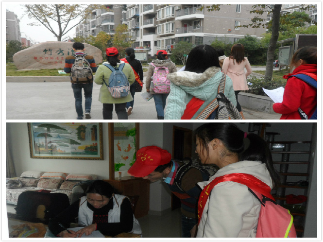 本次服务的内容主要为协助社区做好居民《2013年芜湖市城市文明程度指数测评》的问卷调查。在社区负责人的任务讲解和要求之后,志愿者们分成小组,开始了本次服务活动。在挨家挨户敲门时,志愿者们态度友好,礼貌问候,真诚的讲解,让很多居民们愿意来完成问卷调查;当遇到阅读有障碍的老人时,志愿者都会进行耐心讲解,帮助老人完成问卷的同时也得到了老人们的称赞。三个小时后,志愿者们圆满的完成了问卷调查的工作,受到了社区工作人员的一致好评。