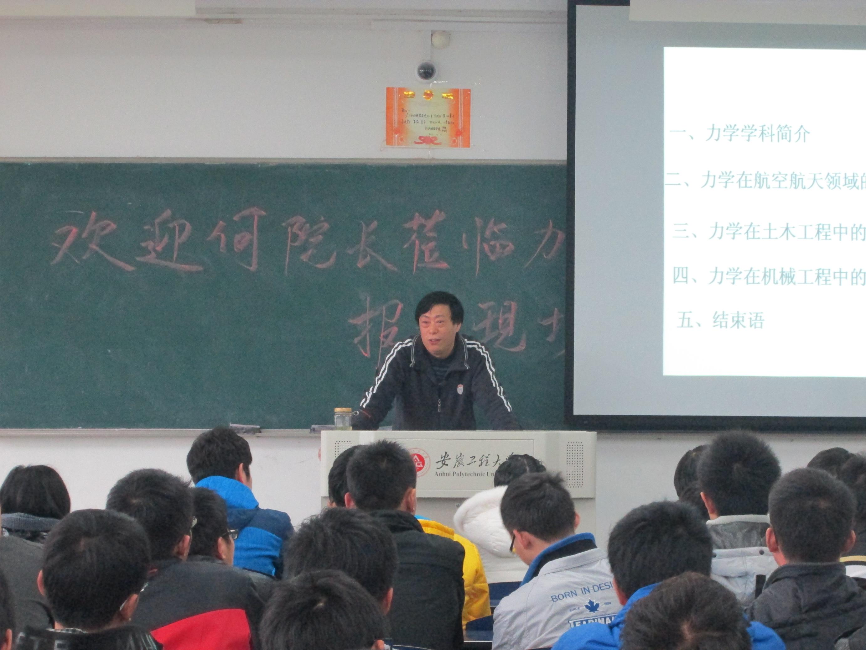 何芝仙首先向同学们阐明了力学的定义,同时列举出力学在航空航天领域的应用,直观地让同学们认识到什么是力学。接着,他以赵州桥和长江大桥为例,生动形象的地向同学们讲述了力学知识在建筑和土木工程中的实际应用,并强调学习力学的重要性与必要性。随后,他向同学们讲解力学问题的一般解题方法,即可以将工程问题转化为数学模型,进而利用数学模型来求解力学问题。最后,何芝仙指出,力学这门课既是基础学科又是工程技术学科,作为一名理工科大学生,学好力学不仅是学业的要求,更是职业的要求。本次讲座使同学们受益匪浅,为引导学生进行深入的力学研究创造了良好的氛围。