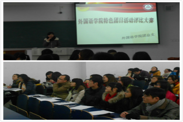 自2013年学院出台文件《关于进一步规范主题团日活动的通知》,“特色团日活动”评比就成为学院团总支的品牌活动之一,旨在提高团日活动的质量,加强团的自身建设,增强团员的意识,发挥共青团引导学生自我组织、引导、服务和教育功能,以达到理想信念教育、人文精神塑造和社会认知培养的作用。在本学期的主题团日活动,学院团总支以主题菜单的形式列出必选项和可选项供各团支部选择,主题囊括“学风”、“自信”、“梦想”、“安全”、“信任”、“感恩”和“读书”等。近3个月以来,全院13个团支部围绕上述主题,充分利用团支部微博,采用线上线下相结合的方式,陆续开展了近30次丰富多彩的团日活动,同学参与度达到99%,形成“团结、向上、和谐”的支部氛围,为创建优良院风学风、营造良好班风奠定了坚实的基础。