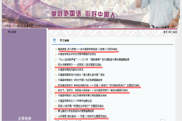 活动现场,来自各班级的团干代表依次上台用PPT展示详细汇报了班级团日活动的开展情况,带领大家重温了各班团日活动的疯狂、感动和魅力。经过评委们的慎重考虑,结合各团支部团日活动申报材料、可行性、创新性、效果以及各代表现场答辩等几个方面进行了综合严格的评审后,获得本学期“特色团日活动”称号的团支部为:英语111班团支部、英语122班团支部、日语111班团支部、英语(升)131班团支部和英语132班团支部。