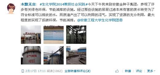 截止到开学,生化学子共发布了970条微博,阅读量达82万人次。