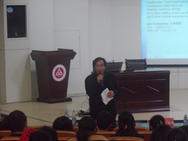 接下来的另两位嘉宾则向身处象牙塔里的学子们传授未来在企业的立身和发展宝典。塔奥集团工程部的韩德柱经理以其亲身经历来阐释成长和坚持的深刻内涵。世界500强企业广东威灵(芜湖)电机有限公司的方志部长用自己和员工的成长经历和宝贵经验为同学们今后在企业不断进步提出了十条建议。