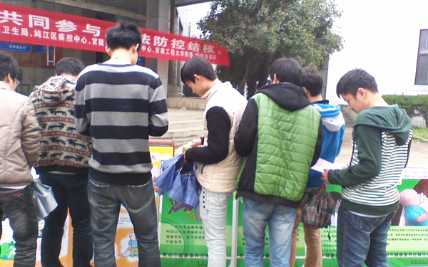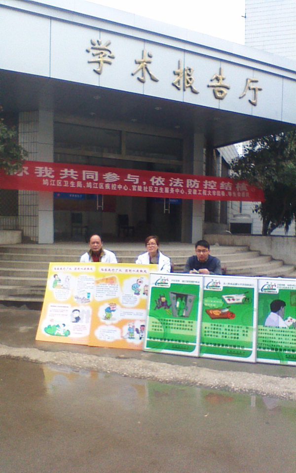 现场通过悬挂横幅、发放宣传资料、专家咨询和问卷调查等手段进行宣传。在宣传活动中我校广大师生积极参与,气氛非常活跃,宣传效果较好。