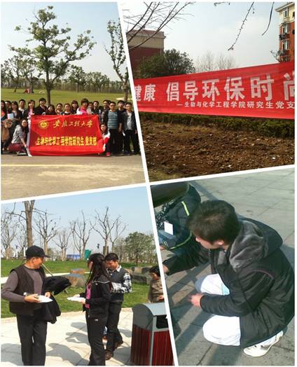 雷锋已成为一个国家的记忆,雷锋精神需要我们实践与每一次行动。在研究生党总支的号召下,各学院党支部积极参与,开展了丰富多彩的实践活动。机械学院研究生将滨江公园的沿江护栏,清洗一新,为我们美丽的江城增添了一道亮丽的风景;电气工程学院研究生,在支部书记的组织下,来到神山公园纪念逝去的烈士们,缅怀革命精神,并清除神山各个角落的垃圾,为大家创造了一个干净美丽的公园环境;生化学院全体研究生在党支部的统一安排下,从生化实验楼步行至雕塑公园,悬挂横幅,张贴标语,清扫垃圾,发放环保、消防小册子,向学生以及市民宣传保护环境、以及室内消防等知识,提倡“关爱生命健康,倡导环保时尚”的理念。