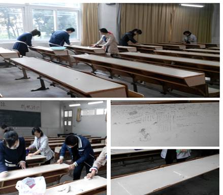 319下午,思政部研究生开展了学雷锋爱心义卖活动,践行雷锋乐于助人的精神,将义卖款捐给教育事业,传递雷锋的正能量;人文学院、纺织服装学院研究生围绕“魅力校园,志愿服务”的主题,对墙面小广告、课桌文化等进行了清除,维护校园草坪,禁止乱踩乱扔的现象,美化了校园环境,给大家提供了舒适的学习生活环境。