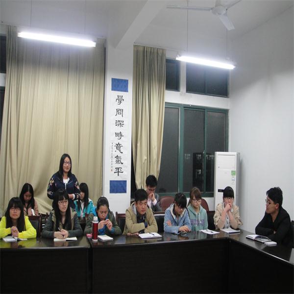 黄江胜首先介绍了学生党员与“新生”寝室结对开展的“1+1”朋辈教育活动的目的和帮扶内容。接着,与会学生寝室长分别发言,大家一致认为学院的“1+1”朋辈帮扶教育活动在他们近一年的学习生活中发挥了积极作用,他们认为学长(姐)作为同龄人,与他们具有相同或相近的价值取向、人生目标、交友方式等,彼此容易沟通交流,不仅可以帮助他们解决日常生活方面遇到的问题,缓解心理压力,同时认为大家所学专业相同,能够帮助“新生”树立切合实际的目标、巩固专业思想、找到适合自己的学习方法,指导“新生”做好大学学习和生活规划。与此同时,他们也对“1+1”朋辈帮扶教育提出了一些意见,例如:希望朋辈帮扶活动能提前到新生入学伊始;希望延长帮扶时间等。最后,章靖平对大家的提出的问题一一做了解答,并要求大家做好大学生涯规划,树立明确的学习目标,在学好专业知识的同时积极参加各项课外实践活动,抓住机遇锻炼自己,不断提升自己的综合素质,用自己的实际行动去书写多姿多彩的大学生活。