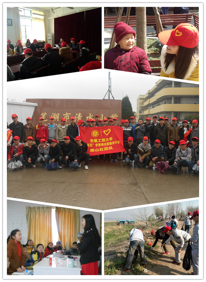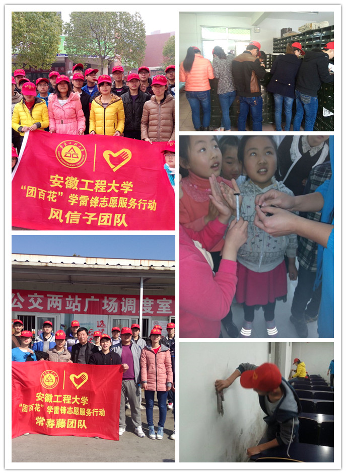 “风信子”温情送信团队和“蒲公英”爱心信使团队每天坚持面向全校师生积极开展信件整理和送信回家服务;“映山红”和“满天星”科普团队主动走入清水小学和清苑社区开展物理化学系列科普知识讲座和防火科普宣传;“康乃馨”关爱老人团队以官陡街道鸠兹家苑邻里中心为依托开展关爱老人主题行动;“常春藤”团队到公交车站进行义务清扫,此外还有校园小广告清理、爱心家教、贫困儿童助学等一系列校内外形式多样的志愿服务活动。