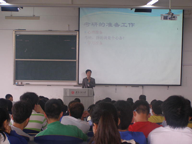 接着,张亮亮就研究生报考政策、全国考研形势、安徽省研招情况以及我校研究生录取政策等作了详细而全面的介绍。