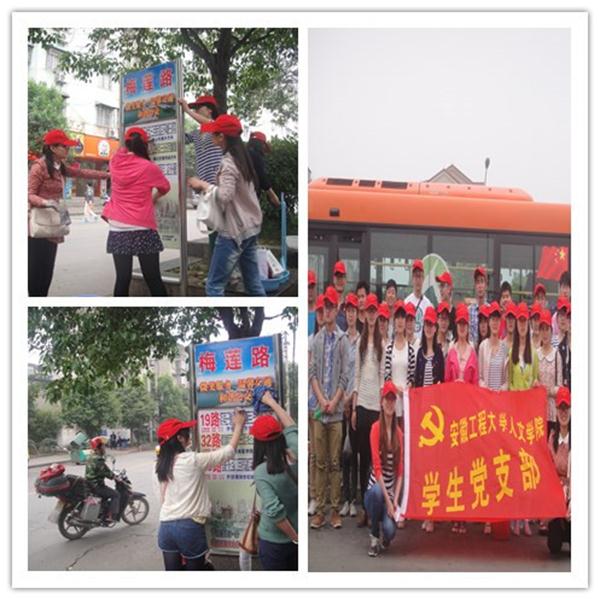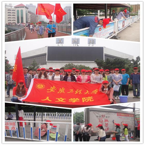 为发挥党员先锋模范作用,践行党员的志愿服务理念,人文学院分党校第三期党员培训班全体学员佩戴着党徽、高举着党旗于5月18日上午前往芜湖火车站开展志愿服务活动,本次活动旨在改善火车站周边公交站台的卫生状况。