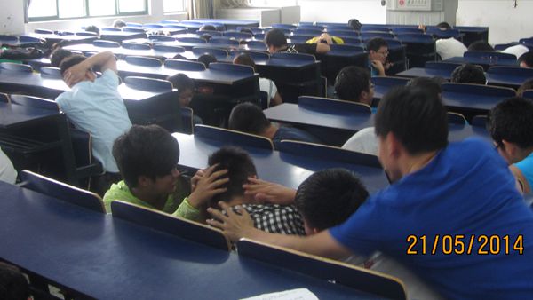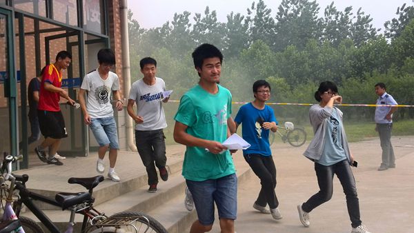 5月21日下午,计算机与信息学院在5号教学楼举行了防灾减灾应急疏散演练。此次演练由校保卫处指导,辅导员罗国旗、刘畅现场指挥,来自2012级、2013级共180余名学生参加了演练。