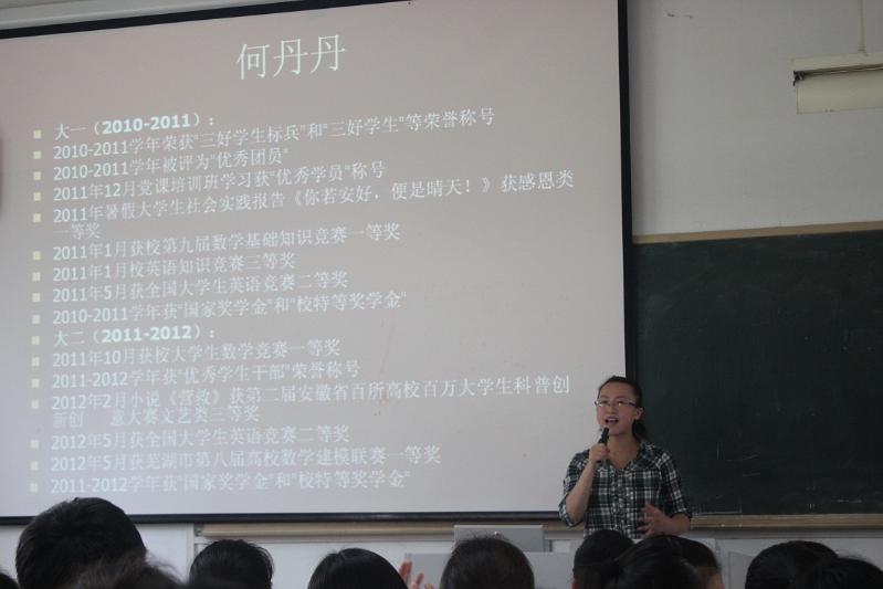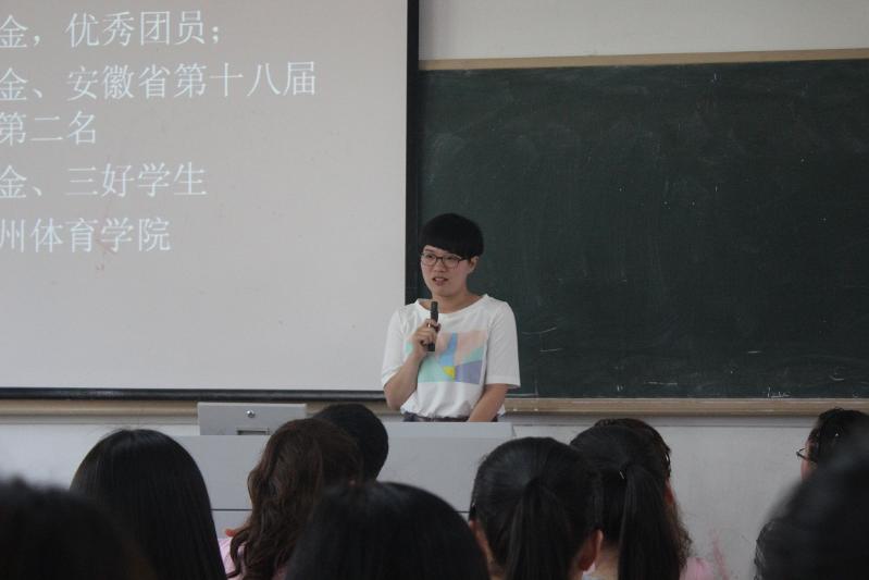 6月4日下午,体育学院“奋斗的青春最美丽”优秀学生成长经历报告会在四教209教室举行。分别来自机械与汽车工程学院、艺术学院和体育学院的五位考取研究生的同学应邀作了一场精彩的成长经历报告会。体育学院除毕业班以外的全体学生聆听了此次报告。体院学院团委副书记王彦青主持报告会。