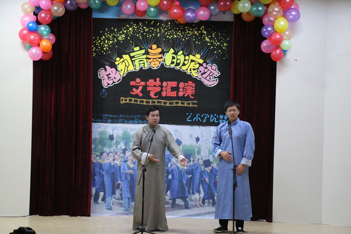 晚会现场气氛和谐活跃,节目精彩纷呈,回味不断。一首《同桌的你》让现场的观众感受到了毕业季的浓厚氛围;校园歌谣《那些花儿》勾起即将毕业的学子对大学生活的点滴回忆;多姿多彩的现代舞蹈《烈焰红唇》彰显出我院学子的青春活力;歌舞《致青春》深情地诠释了对毕业生美好前程的深深祝福与企盼。随后的歌曲串烧、乐器重奏、小品、魔术、街舞、武术及模特走秀等表演将现场的气氛推向高潮,更为即将毕业的学子们奉上一场视听觉的饕餮盛宴。