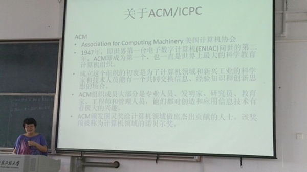根据计算机与信息学院教师教学能力提升计划安排,为进一步提高教育教学质量,促进教师教学能力提升,特别是实践教学能力的提升,7月3日下午,计算机与信息学院教师张丽平在6教214教室为广大师生作题为“学科竞赛专题讲座——计算机程序设计大赛与计算机设计大赛”的报告。