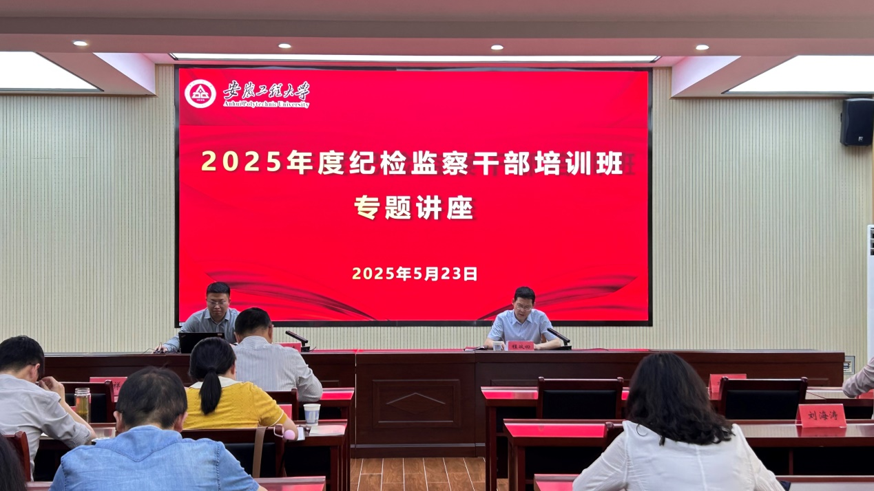 本网讯 5月23日,学校在A座104会议室举办2025年度纪检监察干部培训班专题讲座。校党委常委、纪委书记、监察专员程双四出席会议并讲话。校纪委委员、二级纪委书记(纪检委员),纪委办、巡察办全体人员参加。