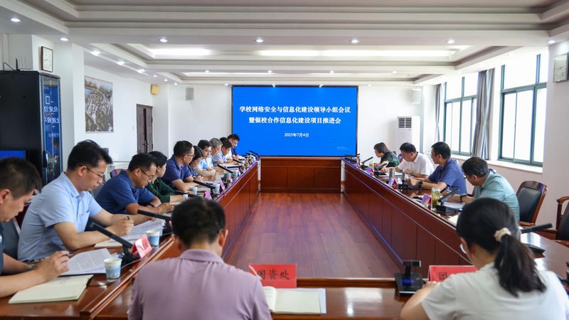 本网讯 7月4日,学校在A座1215会议室组织召开网络安全与信息化建设领导小组会议。校党委副书记、校长黄友锐,校党委副书记郑健,副校长周虹屏,副校长王成军,网络安全与信息化建设领导小组成员单位负责人参加会议。会议由黄友锐主持。