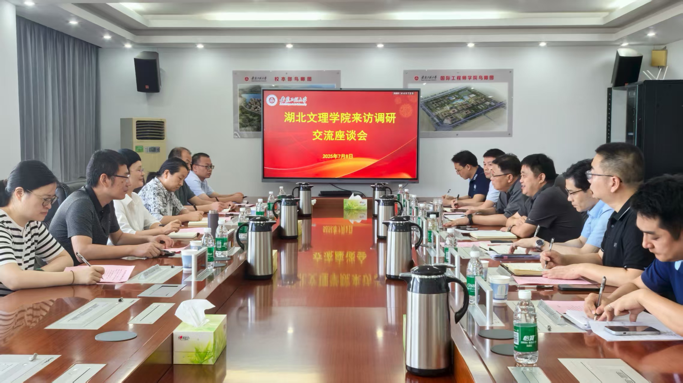本网讯 7月8日,湖北文理学院党委常委、副校长秦军荣一行来校调研交流,校党委常委、副校长张开炳出席并主持会议,有关学院和部门负责人参加。