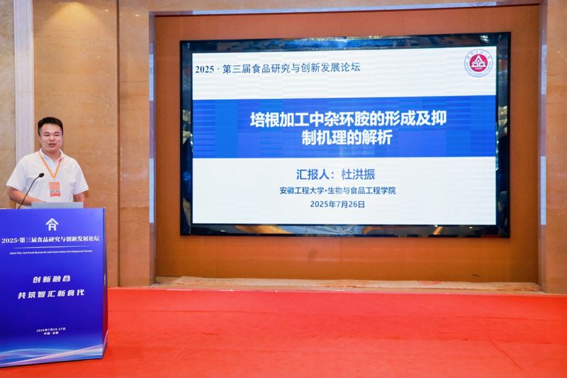 会上,生物与食品工程学院青年教师杜洪振被授予“2025年度《食品研究与开发》优秀青年编委”称号,并在“食品质量与安全”分论坛上作专题学术报告。